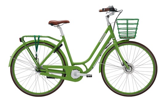 Du får 7 indvendige Shimano-gear samt både fodbremse og rullebremse. Leveres med kurv, bagagebærer/strop, støtteben, retroklokke, LED-baglygte, antipunkteringsdæk med refleks og godkendt lås.