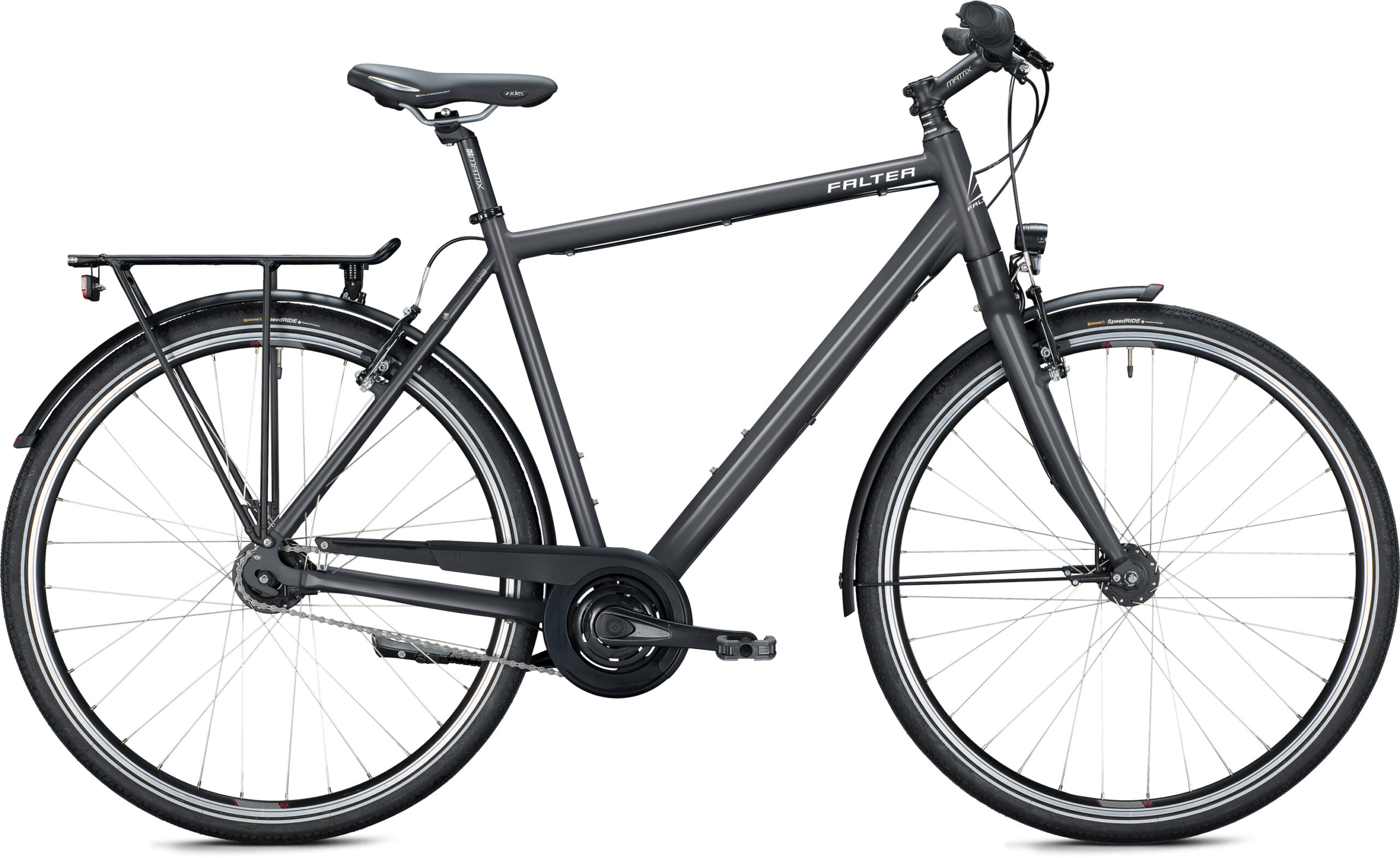 Falter U 4.0 leveres med Shimano dynamo fornav og en kraftig Matrix forlygte og en Herrmans LED baglygte med standlys.