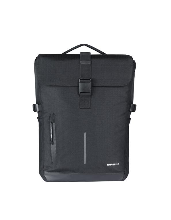 De reflekterende detaljer sikrer, at du er meget synlig i skumring og mørke. Desuden er Basil Move taskerne lavet af vandafvisende genbrugspolyester og udstyret med et regnslag for at holde dine ejendele tørre under uventede kraftige byger.